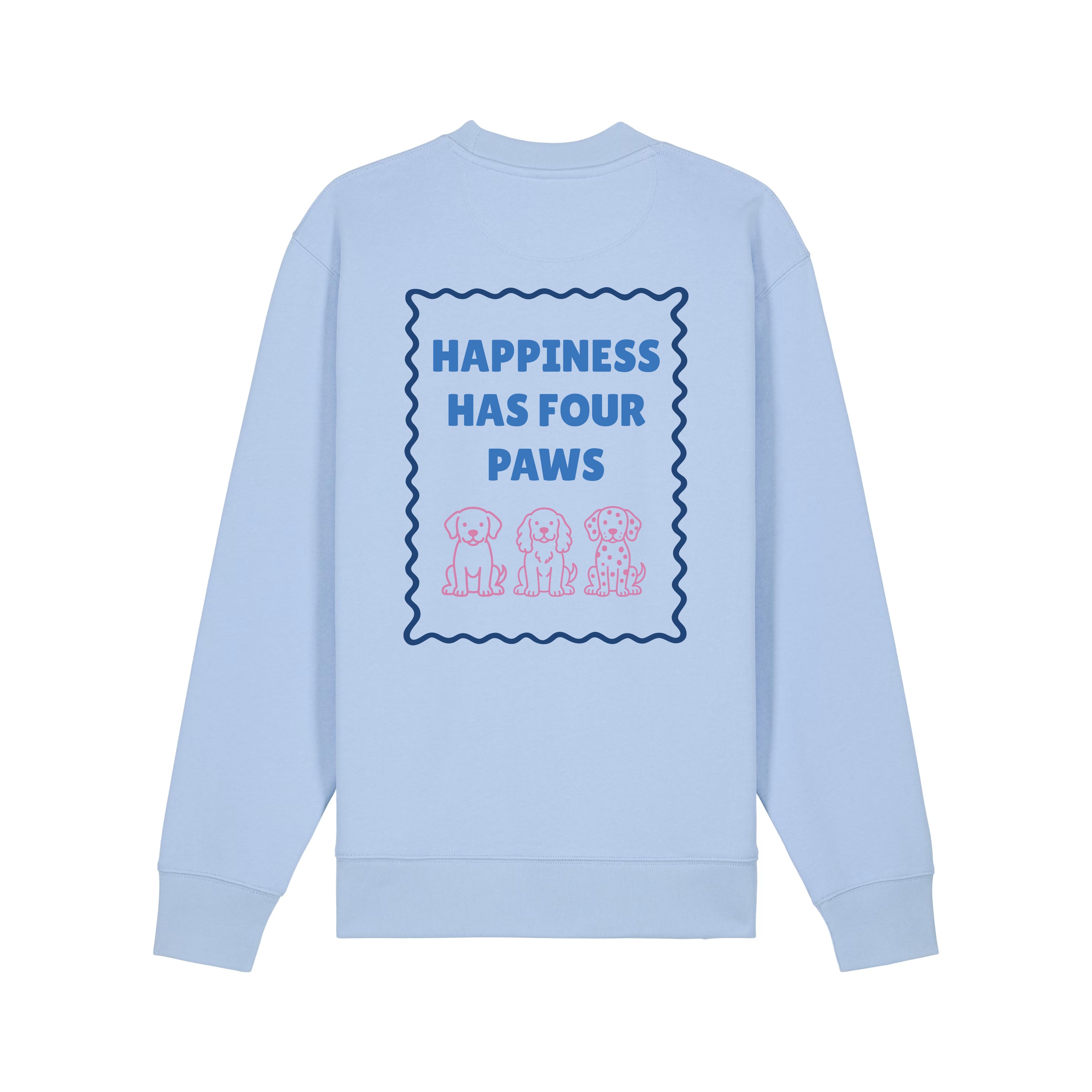 Wrap yourself in cozy comfort and puppy love with our “Happiness Has Four Paws” Sweatshirt. Featuring an adorable trio of pups and a heartwarming message, this piece is perfect for dog lovers who believe that true happiness comes with a wagging tail.